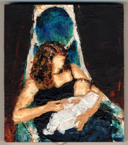 Madonna Acrylic on Wood Palette Knife and carving 3.5″ x 4″ Two sided piece – “Mother Daughter” on other side Like Loading...
